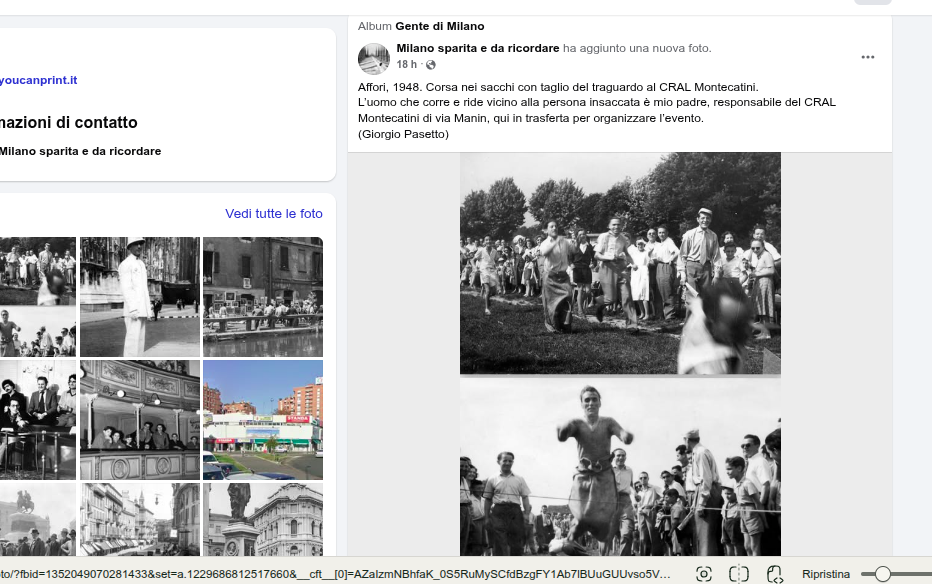 POVERO PIRLA… MA QUALE “L’UOMO CHE CORREVA NEL SACCO ERA MIO PADRE”… SE NEL 49 SUO PADRE AVEVA 40 E PASSA ANNI, OGGI LUI DOVREBBE AVERNE 100…” I SOLITI FURTI DI COPYRUGHT RUBATI DALLE EDITORIE PASSATE SULLA STORIA DI MILANO…