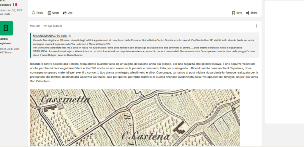 UN ESEMPIO, GIÀ CITATO IERI, È IL SUO FIDANZATINO MAURIZIO COLOMBINI… DOPO AVER FINTO (NEL FORUM-BLOG IN VIOLAZIONE DEI TERMINI DI SERVIZIO, MILANO SPARITA SKYSCRAPERCITY) DI AUTODOMANDARSI SE UNA FORNACE (OLTREMODO COLLOCATA, NELLA MAPPA DAL MEDESIMO POSTATA, SULL’ALZAIA NAVIGLIO GRANDE E NON LUNGO LA LODOVICO IL MORO, COME DA CARTOGRAFIA RUBATA, DAL MEDESIMO COLOMBINI, RISALENTE AL XIX SECOLO, VEDASI PIU’ SOTTO…) FOSSE LA FORNACE CURTI: