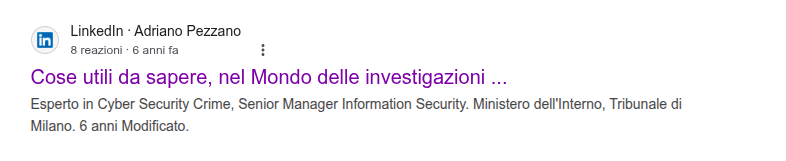 IL ‘NDRANGHETISTA ADRIANO PEZZANO È PERSONAGGIO DI MAFIA E DI NARCOTRAFFICO E APPALTI TRUCCATI MOLTO NOTO, DI QUERELE SE NE PRESE PARECCHIE ANCHE SE È TUTT’OGGI PROTETTO DALLA MAFIA GIUDIZIARIA DI MILANO E DI ALTRE PROCURE ITALIANE (SINO A ROMA), TRA I VARI I PM ELIO RAMONDINI E PAOLO STORARI MA LA LISTA È INFINITA, CERCANDO (POCO IN GOOGLE MEGLIO IN BING ED ALTRI MOTORI DI RICERCA ALTERNATIVI). UNA BREVE PRECISAZIONE: A DISPETTO DEL MILLANTATO CREDITO NEL SUO PROFILO LINKEDIN, TALE ‘NDRANGHETISTA NON È INGEGNERE INFORMATICO, NON HA COMPETENZE DI CYBER SECURITY, ALL’OPPOSTO È MANDANTE DI ATTACCHI HACKER VERSO CHI LO DENUNCIA, COMMISSIONATI A POLIZIA POSTALE E HACKER RUSSI E U.S.A. E NON HA COMPETENZE ELETTROMEDICALI, IN SINTESI, https://www.yumpu.com/it/document/view/70909546/rg4045-11mod45