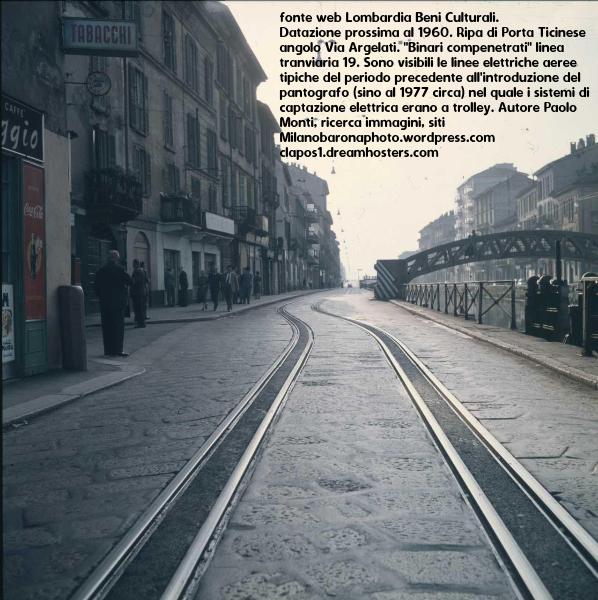 COME DA DIDASCALIA, IMMAGINE DI PAOLO MONTI, LE GEMOETRIE DEI BINARI COMPENETRATI, TRAM LINEA 19, INTORNO AL 1960, TRA RIPA DI PORTA TICINESE ANGOLO VIA ARGELATI