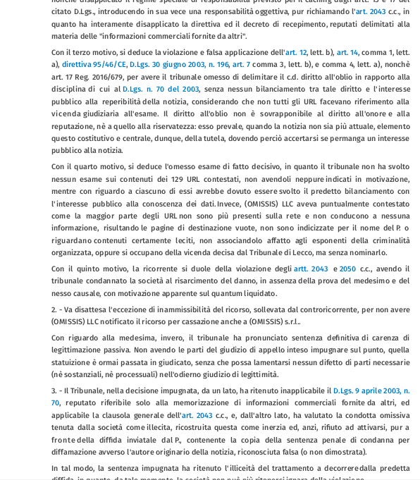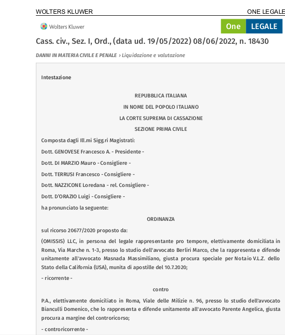 QUANTO SOPRA DIMOSTRATO, TUTTAVIA, NON ILLUSTRA, ANCORA, LA GRAVITA’ DEI FATTI ACCORSI DURANTE TALE PROCEDIMENTO E DI QUELLO PARALLELO INTENTATO DAL ‘NDRANGHETISTA PEZZANO, CONTRO GOOGLE ITALIA E GOOGLE USA… COME DIMOSTRATO NELLA COPIA (SPEZZETTATA) DELLA SENTENZA DI CASSAZIONE (CHE DICHIARA INAMMISSIBILE IL RICORSO DI GOOGLE) GLI AVVOCATI DEL PEZZANO E IL PEZZANO MEDESIMO DICHIARANO CHE NESSUNO AVREBBE PRESENTATO ISTANZA DI APPELLO ALLA SENTENZA DEL TRIBUNALE DI LECCO, DICHIARANDO IL FALSO IN REGIME DI MENDACIO E CALUNNIA… NEL MERITO DI COME SIA STATO POSSIBILE CHE LO STUDIO LEGALE NOMINATO DAL RICORRENTE GOOGLE INC NON SI SIA ACCORTO E RESO CONTO E ANCOR MENO PRETESTO, DALLO STUDIO LEGALE INGAGGIATO DAL PEZZANO… DELLA PRODUZIONE DI ATTI CHE DIMOSTRASSERO LA DEFINITIVITA’ INAPPELLABILE DELLA SENTENZA (INVECE ANNULLATA NEL GIUGNO 2019 IN CORTE DI APPELLO) RIMANE UN MISTERO… DIFFICILE CAPIRE SE SI TRATTA DI SCIATTERIA OPERATIVA DEI LEGALI DIFENSORI DI GOOGLE O DI UN SOTTERRANEO COMPROMESSO (UN COLLOQUIO TELEFONICO CON I LEGALI DELLA CONTROPARTE RICORRENTE GOOGLE NON HA CHIARITO TALE DISCPREPANZA… I MEDESIMI SI SONO GIUSTIFICATI SOSTENENDO CHE IL PROCESSO CONTRO GOOGLE SI BASAVA SOLO SULLA COPIA DI UNA SENTENZA DI PRIMO GRADO… TUTTAVIA TALE CONDANNA VENNE ANNULLATA MOLTO PRIMA DELL’APPELLO, PRESSO IL TRIBUNALE DI MILANO, DI GOOGLE (AVVENUTO NEL 2020) PER NON PARLARE DELLA CONDANNA DEFINITIVA DI GOOGLE, 3 ANNI DOPO L’ANNULLAMENTO DEL PROCESSO CONTRO LA PERSONA CHE DENUNCIO’, ALL’ANTIMAFIA DI MILANO, LA PRESENZA, IN UN APPALTO TRUCCATO ASL 1 MILANO, DI UN DIRIGENTE ESPULSO DALL’ORGANICO ASL PER RAPPORTI CON LE MAFIE E DEL NIPOTE, AVENTE LO STESSO COGNOME, CHE NE VANTAVA LA PARENTELA PRESSO ALCUNI DIPENDENTI DELLA SOCIETA’ USCENTE, LA VITROCISET, SIA DELLA ENTRANTE I&T SRL…